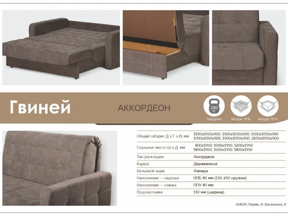 Диван Гвиней 1000х1950 в Сатке - satka.mebel74.com | фото 2
